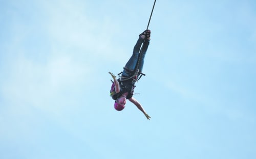 Первой прыгнула Валентина. Зрители услышали слабый крик, только когда её подбросило на верёвках обратно вверх. «Для меня самый острый момент – стоять на трапе. Вот где становится по-настоящему не по себе и ты понимаешь, что обратного пути уже нет, – говорит Валентина, только спустившись на землю. – Хотя не имеет смысла всерьёз волноваться: организаторы имеют «корочки» спасателей и очень много прыгают». У Валентины это был второй прыжок. Первый она совершила с 32-метровой «зажигалки». «Хочется адреналина. В ближайшее время собираюсь прыгнуть с парашютом. Ещё катаюсь на горных лыжах, хочу попробовать в этом году встать на сноуборд, – говорит Валентина. – А вообще, конечно, основную часть времени забирает работа. Не поверите, я медик».