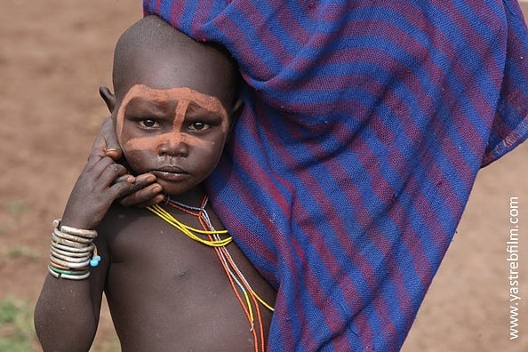 Традиции сурма намного страшнее. Племя считается более примитивным. Сурма чаще ходят голыми и славятся своей любовью к крови. Они любят проткнуть стрелой шею коровы и слить немного крови, не убивая животного. Кровь смешивают с молоком и пьют. Это считается лучшим напитком. Сурма активно используют скарификацию – нанесение шрамов на тело. Палочкой рисуют нужный узор, затем подцепляют кожу острым шипом акации и подрезают бритвой. Потом в раны втирают грязь, подселяют личинок, чтобы пошло нагноение. Как только процесс начался, его останавливают при помощи дезинфицирующей травы. А на теле навсегда остаются выпуклые шрамы. Скарификация, как и татуировка, – это наше с вами прошлое. Загляните в «замёрзшие» курганы пазырыкской культуры на Горном Алтае. И увидите, что наши предки, жившие в 4-3 веках до нашей эры, сплошь покрывали себя татуировкой. Она носила сакральный характер – рисунки защищали от злых сил, по этим знакам человек отделял себя от животных, по ним же предки в другом мире могли узнать его. Мы не так далеко ушли от них. Современная женщина, подкрашивающая ногти красной краской, имитирует нечто иное, как окровавленные когти.