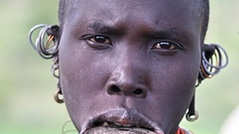 Женщины сурма, к примеру, не сильно озабочены тем, как подрезать отвисшую грудь. Зато у них свои «фишки». Юным девушкам прокалывают нижнюю губу и вставляют сначала палочку, а потом и диск, который достигает 30 см в диаметре. Перед этим девушке выбивают четыре нижних зуба. Есть версия, что женщин начали специально уродовать в период колонизации, чтобы их не увозили в рабство. Так или иначе, но сейчас это торговая ценность. Чем больше диаметр диска, тем больше коров дадут при замужестве за девушку. Есть и пить с таким диском невозможно, потому, если рядом нет чужих, его снимают, и губа повисает, как и мочки растянутых ушей. «У женщин можно найти и трапециевидные диски и губы, которые выглядят достаточно устрашающе», – рассказывает Сергей Ястржембский. Ужасаться этому, наверное, глупо. Просто представьте, как выглядят в их глазах наши девушки, надевшие на ногу крайне неудобные 15-сантиметровые каблуки. Чем выше каблук, тем больше дадут за девушку. Не коров, конечно. Но принцип такой же, как у дикарей.