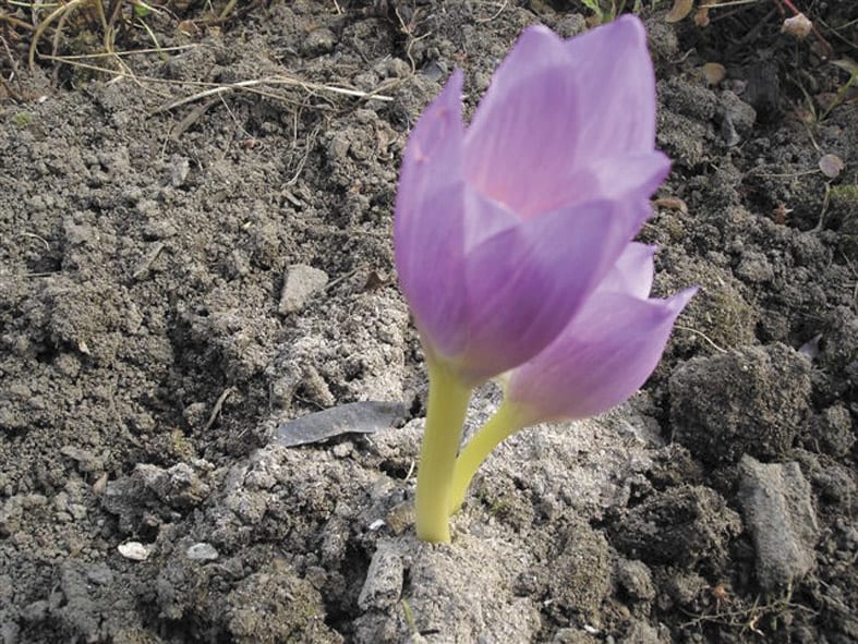 Более 10 лет назад в журнале «Мой прекрасный сад» прочитала статью об интересном луковичном растении колхикуме (безвременнике), который цветёт глубокой осенью и нежные цветы которого не боятся заморозков. Желанные луковицы приобрела с трудом, т.к. растение в нашем регионе и сейчас достаточно редкое, посадила в начале августа и в первую же осень получила наслаждение от их цветения.