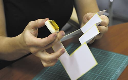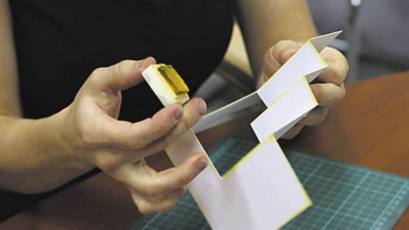 «Я вам вот ещё что сейчас покажу! Берём дырокол, выбиваем дырочки, кладём трафарет, промакиваем подушечкой и быстро засыпаем специальной пудрой, – Ирина уже вся в этом процессе, забыв, что идёт интервью. – Утюжок уже нагрелся, чуть-чуть ждём, стряхиваем пудру и запекаем на утюжке. Пудра плавится и получается объёмный блестящий трафаретный рисунок. Красиво как!». Она держит листочек на ладошке и сама любуется. Ей нельзя не поверить, она искренне любит открытки.