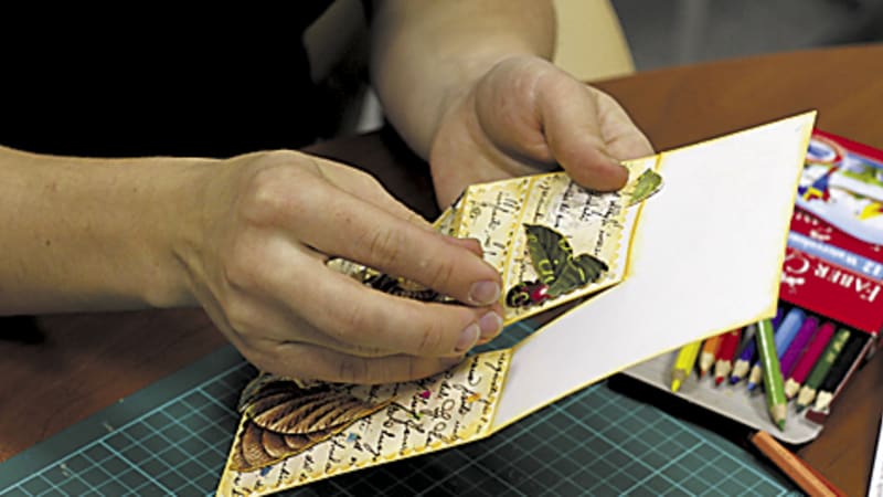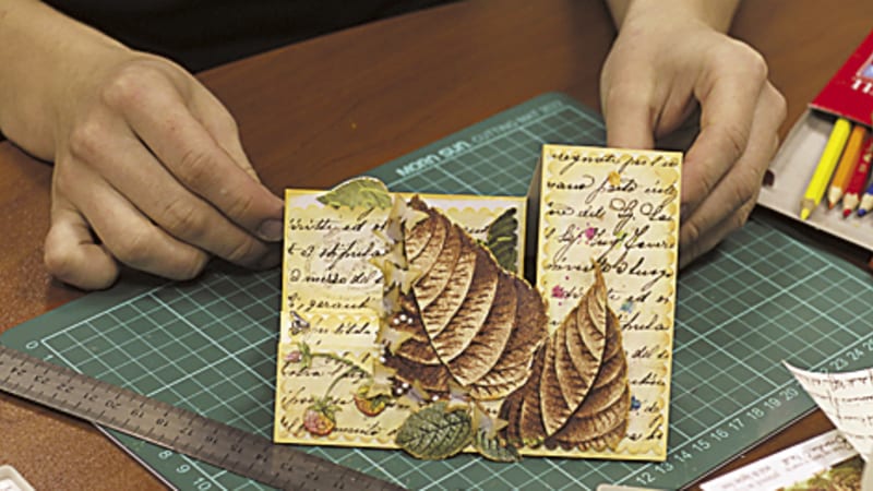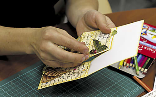 «Мне всегда чего-то не хватало в стандартной открытке, – говорит она. – Во времена моей юности все открытки были типографские. Я всё время что-то в них доклеивала, дописывала, дорисовывала, вырезала окошки. У её друзей хранятся открытки, которым уже четверть века. Когда около полутора лет назад у Ольги Селезнёвой появились внуки, увлечение пошло на новый виток. «Я отправилась в Интернет за информацией, как сделать альбом для внука, а попутно увидела и открытки. Начала покупать профессиональные материалы – бумагу, ленточки, цветы, дыроколы». На её рабочем месте маленькая коробочка. Внутри – открытка с голубыми цветами и синей бабочкой. «Это я вчера вечером сделала, у меня идеи появляются прямо по дороге домой, – рассказывает она. – И вот иду с трясущимися руками – скорее бы, скорее! Бумажка в одном месте, бабочка в другом, наклеечка в третьем. И так до поздней ночи могу сидеть». Это действительно страсть. В некоторые открытки она вписывает свои стихи. «Младший сын всё посмеивался над этим, а потом я сделала несколько открыток для девушки, которая ему нравилась, – рассказывает Ольга Селезнёва. – Он принёс ей такой подарок – она была очень растрогана. И стала с ним дружить».