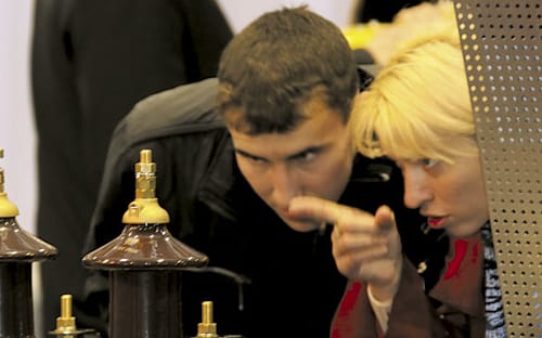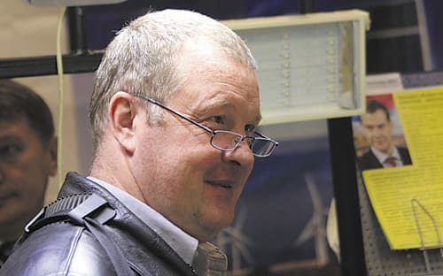 Открывая выставку, заместитель председателя правительства Николай Хиценко напомнил собравшимся: «Для нас это серьёзная задача, поставленная президентом Российской Федерации, – снизить энергоёмкость ВВП к 2020 году на 40%». Самые «наболевшие места» для Иркут-ской области, по словам чиновника, – высокая энергоёмкость ЖКХ и промышленности. «КПД отдельных котлов – 30–40%, это вообще ни в какие рамки не идёт», – отметил Хиценко.  Возможно повышение КПД до 80% – при том же количестве топлива и тех же затратах оборудование способно работать в два раза эффективнее. Как это реализовать на практике, должна показать выставка «Энергосбережение», считает представитель «Серого дома». Он лично ознакомился с экспозицией и пообщался со специалистами, представляющими новое котельное оборудование и всевозможную энергосберегающую аппаратуру. Например, у стенда компании «Sew – Eurodrive» Николай Хиценко интересовался характеристиками электротехнического оборудования..)