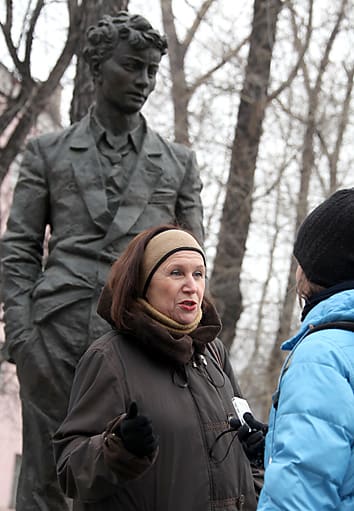 – Когда поставили памятник Александру Валентиновичу Вампилову, я была очень против. Ну как это так? Вот стоит наш Саша, почему-то смотрит на управление железной дороги, – недоумевает актриса. – А потом настолько к этому привыкли. Сыграв спектакль, идёшь мимо и всегда ему что-нибудь скажешь. Если у меня есть цветочки, я положу ему цветы, поделюсь. Мне кажется, он так хорошо здесь прижился, в скверике возле театра и рядом с «Лягушатничком», который мы часто посещали.