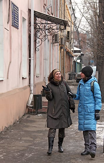 – Вот здесь и было театральное училище, где я сдавала вступительные экзамены. Одна комнатка всего, крылечко и балкон. Пойдёмте я покажу, где ещё было театральное училище и мы были очень счастливые. Это улица Сухэ-Батора, на которую мы переселились, когда театральному училищу дали здание. Долгие годы оно было в таком закутке, что его невозможно найти. Напротив вон та дверь, сейчас кафе «Венское», а раньше была булочная. И здесь продавались конфетки за рубль двадцать и ещё по рублю подушечки, и мы все перебегали дорогу, брали булочку и говорили: «Дайте нам конфетки «врубель». Скажем и помираем со смеху, – Елена Сергеевна внезапно увлекает нас по узкому проходу во двор.