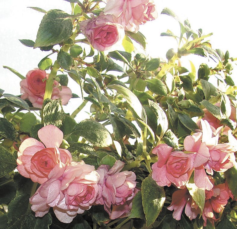 Сказочно хороши, например, новые бальзамины. Мой пышный кустик высотой 25 см усыпан маленькими очаровательными розочками. Бутоны и распустившиеся цветы в точности повторяют лепестки розы. Яркий и одновременно лёгкий цветочный наряд сохраняется в течение нескольких месяцев. Кораллово-розовые цветы образуются на концах побегов. Маленькие, но очень нежные розочки делают растение удивительным и изящным.