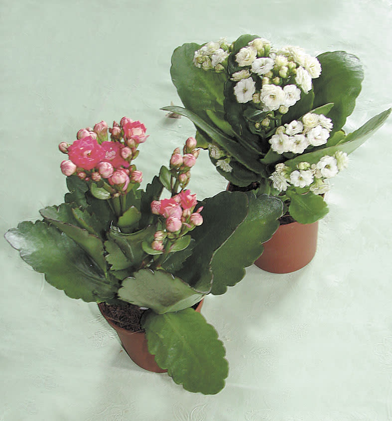 Я уже привыкла к розам у бальзаминов и разнообразным розам бегоний, но розочки на каланхоэ меня удивили. Мелкие цветки до 1 см в диаметре цветут до полугода. Прекрасные низкорослые кустики покрыты соцветиями – гроздьями белых, оранжевых и ярко-красных цветков. Жестковато-мясистые тёмно-зелёные листья об-