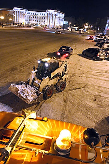 Снег с улиц областного центра убирают ежесуточно, за это отвечают три муниципальных предприятия – «Иркутскавтодор», «Спецавтотранс» и «Служба эксплуатации мостов Иркутска». Как сообщил «Сибирскому энергетику» первый заместитель директора МУП «Иркутскавтодор» Анатолий Сарапулов, сотрудники его компании работают в две смены: ночная длится с 20 до 8 часов, дневная, соответственно, с восьми утра и до восьми вечера. За сутки на дороги в правобережных районах города может выходить до 49 единиц техники, в том числе 20 комбинированных дорожных машин, которые используются для отсыпки улиц, 12 самосвалов, девять тракторов и шесть погрузчиков. В «арсенале» предприятия значатся ещё две тротуароуборочных машины.