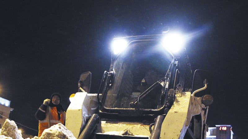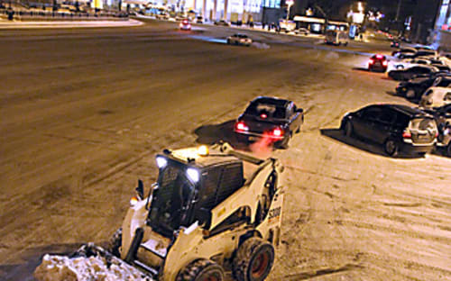 «Сейчас мы работаем только малым комплексом», – рассказывает заместитель начальника участка №1 Октябрьского района «Иркутскавтодора» Юрий Туркин. Рядом снуёт смотрящийся игрушечным погрузчик «Bobcat», загружающий снег в самосвалы. Вместе с обычными «КамАЗами» он и составляет малый комплекс.
