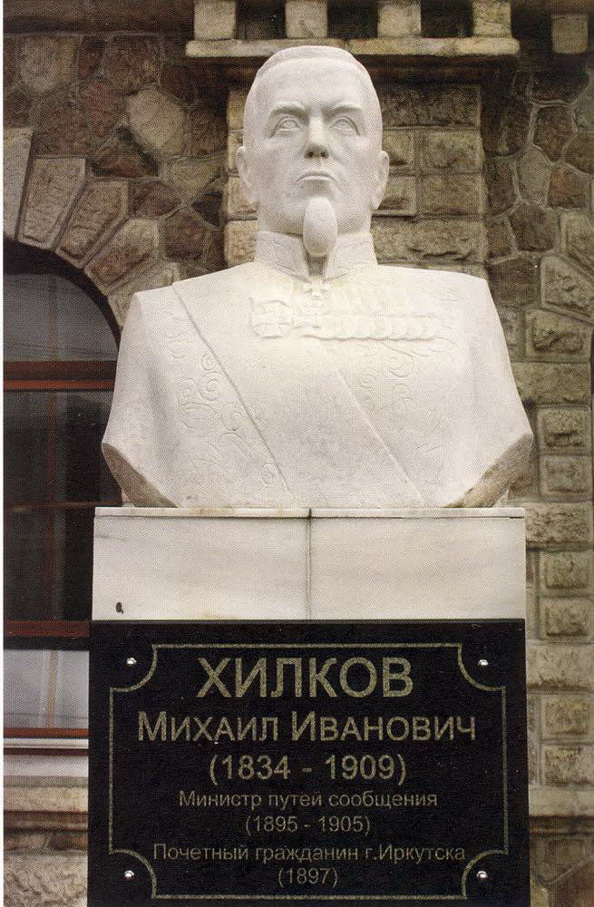 К столетию Кругобайкальской железной дороги (2004 год) возле вокзала в Слюдянке установлен выполненный из белого мрамора бюст (автор – иркутский скульптор Евгений Скачков) министра путей сообщения Михаила Хилкова (1834–1909). Надо полагать, это единственный царский министр – мало того, он ещё и князь! – которому установлен памятник в России после революции 1917 года, к тому же через сто лет после его смерти.