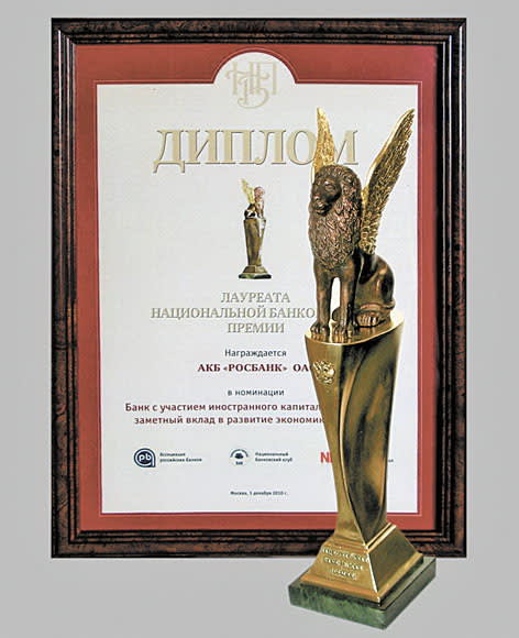 В начале декабря на церемонии празднования Всероссийского дня банкира Росбанк был объявлен победителем Национальной банковской премии в номинации «Банк с участием иностранного капитала, внёсший заметный вклад в развитие экономики России». Эта премия учреждена Ассоциацией российских банков, Национальным банковским клубом и Национальным банковским журналом. Награда за победу в профессиональном конкурсе была вручена президенту Росбанка Георгию Заболоцкому.
