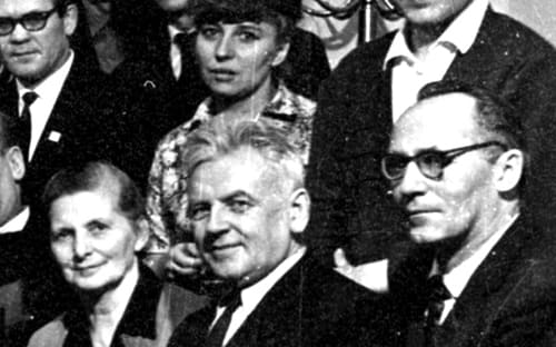 Середина 1960-х годов. В первом ряду четвёртая слева редактор «Восточно-Сибирской правды» Елена Яковлева, рядом с ней один из первых редакторов газеты Георгий Ржанов