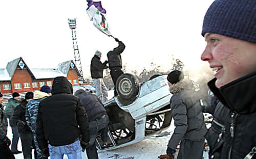 «Руки за голову», – рявкнули где-то наверху, заломили руки и распятого, как бабочку в гербарии, отволокли к спецмашине, где в узком боксе уже сидело с десяток недавних участников беспорядков. Курсанты, вжившись в роль, отпускали соответствующие реплики: «Ну что, чифирнём?» Или: «Начальник, отпусти до кустов». Но для них учения уже закончились. В непроницаемой тьме спецмашины непроизвольно думалось, что силовики Иркутска гораздо более подготовлены к выступлениям фанатов, чем сами фанаты.