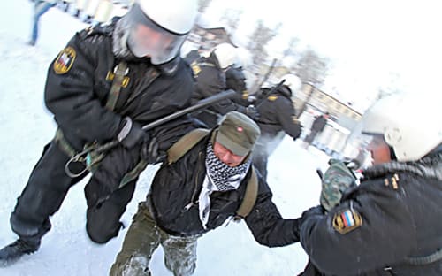 Со снежками против дубинок