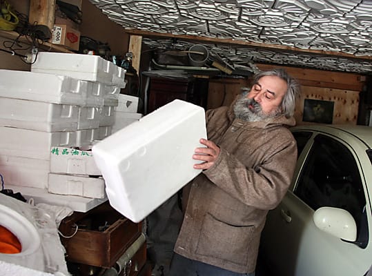 Пенопласт у пенсионера повсюду: во дворе, в гараже, на чердаке и даже в теплице. У него вообще не дом, а мечта «Очумелых ручек». К примеру, есть полные вёдра пластиковых крышек, рассортированных по цветам.