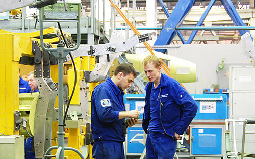 В цехах авиазавода делегацию встретил директор предприятия Александр Вепрев. Оказалось, ему есть чем похвастаться. В 2010 году портфель заказов корпорации «Иркут» увеличился более чем вдвое и достиг 7 млрд. долларов. Выручка предприятия увеличилась на 28% по сравнению с 2009 годом и составила, по предварительным данным, около 46 млрд. рублей.