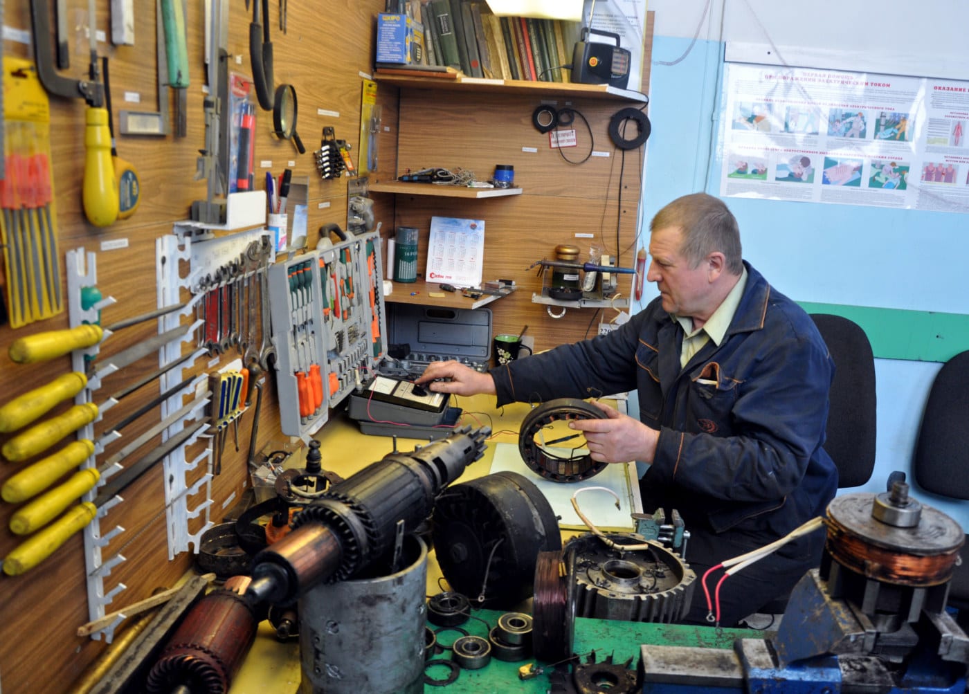Внедрять это нововведение, равно как и всю производственную систему, на Ново-Зиминской ТЭЦ начали в апреле-мае 2010 года. «Полигоном» стал бокс бульдозеров – по признанию Леонида Кравченко, самый сложный участок цеха топливоподачи. «Сначала персонал не очень-то верил в то, что мы можем там что-то сделать, но после полугода работы отношение изменилось, и нынешнее состояние не сравнить с тем, что было, когда мы только приступили к внедрению системы», – рассказал наш собеседник. И в доказательство своих слов продемонстрировал  шкаф общего инструмента в одном из помещений цеха. На стене рядом с ним развешаны тали, к каждому из которых прилагается табличка, а из таблички на самом шкафу можно узнать не только то, какой инструмент в нём лежит, но и в каком количестве. Внутри оказалось 27 переходников для пневмоинструмента, пять скоб для центровки полумуфт, три гидравлических домкрата и контактных зажима, а также  два трубореза и понижающих трансформатора на 12 В. А в инструментальных ящиках, закреплённых за сотрудниками цеха, напильники, гаечные ключи и прочие инструменты ещё и разложены по ранжиру. Подобную картину мы застали и на столе, за которым электромонтёр Николай Макаревич шаманил над разобранным стартёром от бульдозера. К тому же к каждой стойке с инструментом прилагалась бирка, так что даже далёкий от слесарного дела человек с лёгкостью смог бы отличить накидной ключ от рожкового или съёмник стопорных колец от плоскогубцев.
