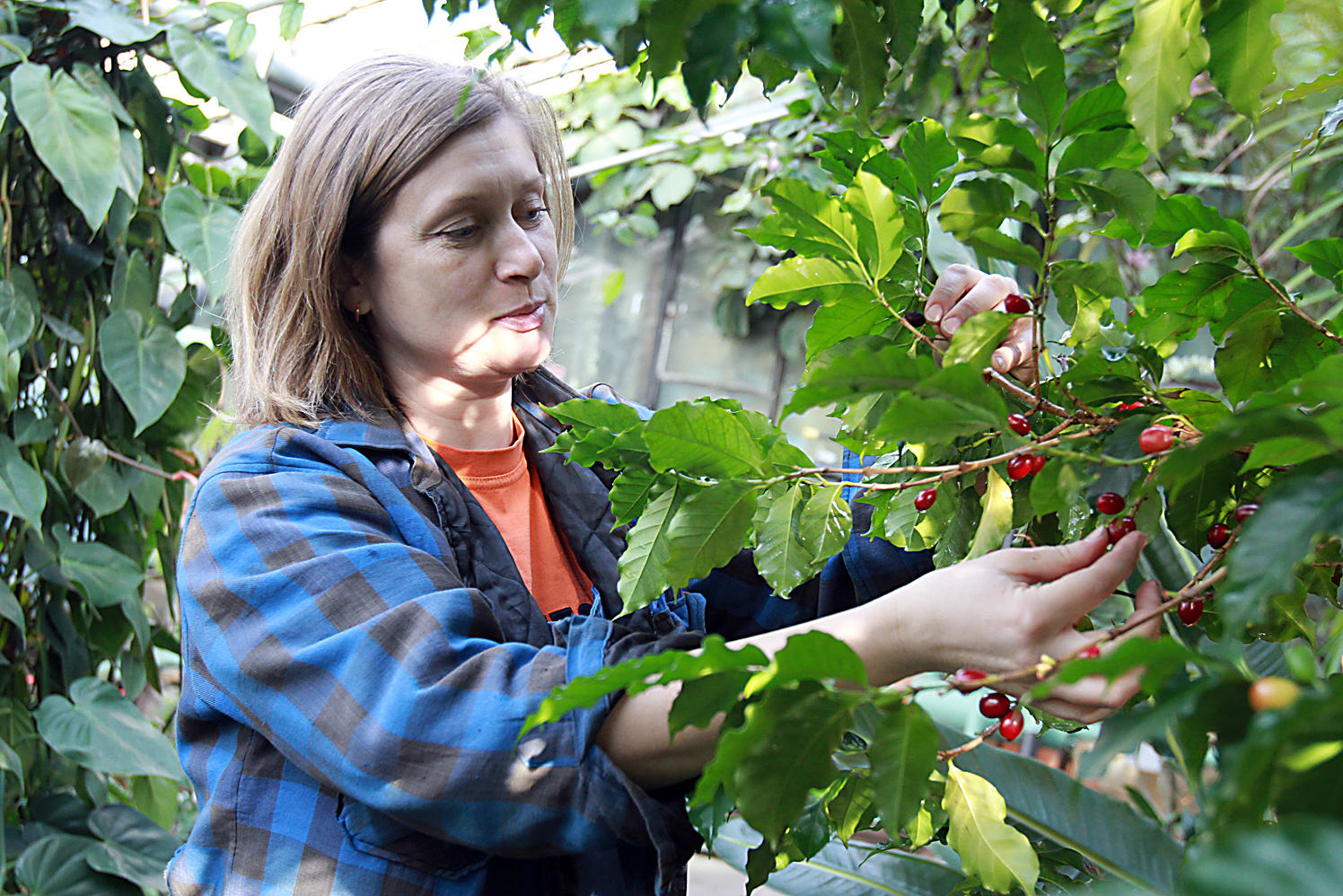 – У нас кофе плодоносит! Правда, вам он не подойдёт, он уже отцвёл. – Татьяна Николаевна подводит к невысоким зелёным кустам, ветки которых густо облеплены у самых веточек тёмно-бордовыми продолговатыми плодами размером с виноградины «дамских пальчиков». – Можете съесть ягодку, она сладкая и оказывает тонизирующее действие. Можете посадить семечку, и у вас вырастет кофейное дерево. Можете, наконец, пожарить и размолоть – будет настоящий натуральный кофе.
