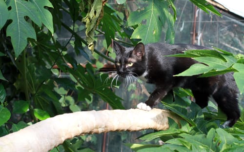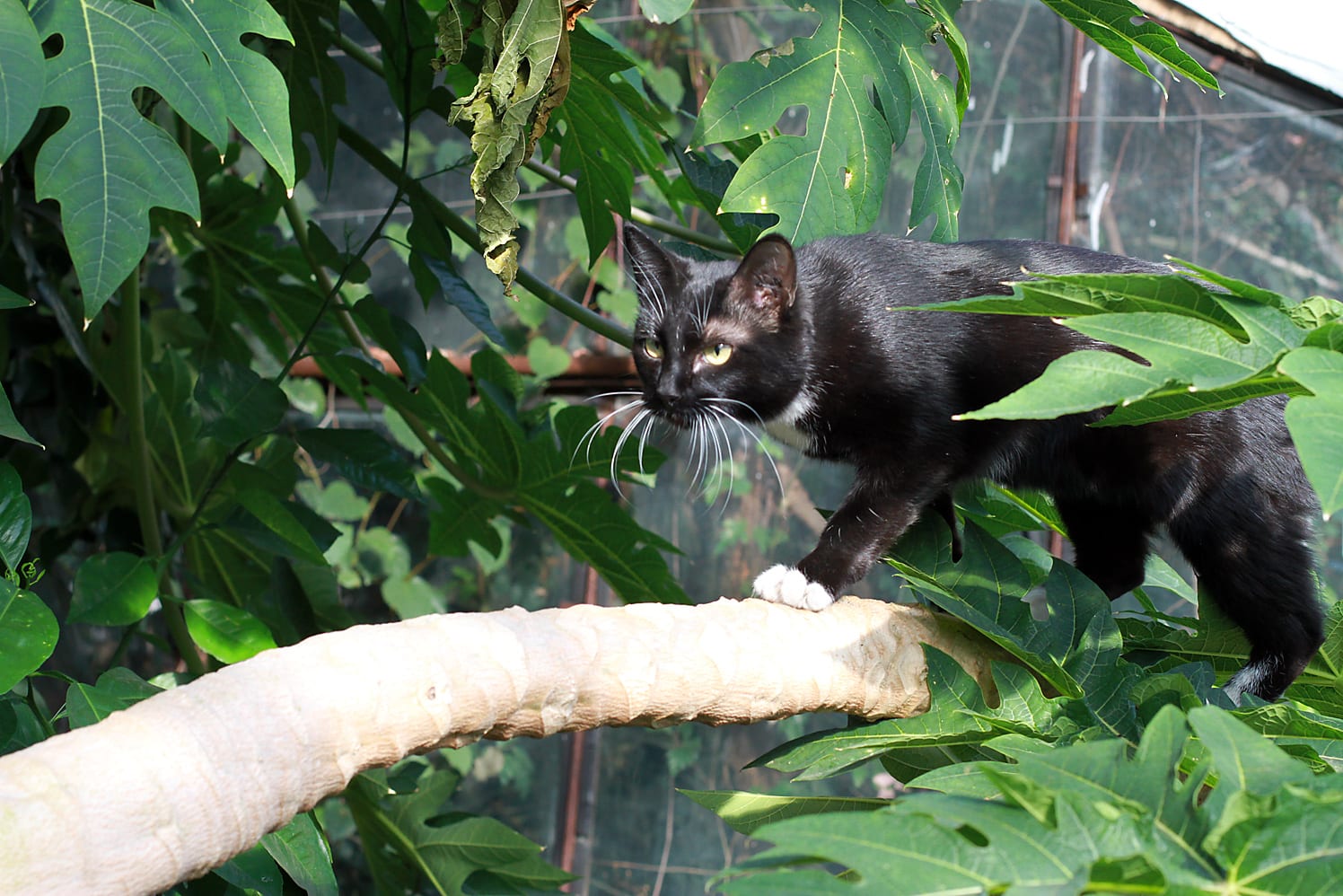 Кошка тем временем переходит по стволу туда, куда показывает лаборант.