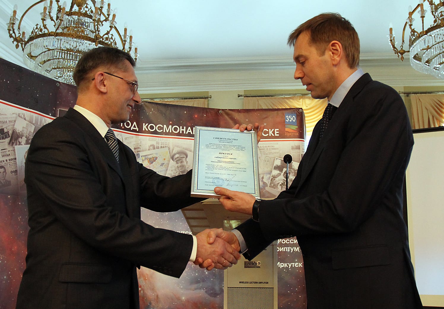 «Иркутск – это космический город, причём в самом буквальном смысле этого слова», – сказал Сергей Язев, открывая 28 февраля Год космонавтики в музее истории Иркутска. В два часа пополудни мэр Виктор Кондрашов принял из его рук свидетельство о присвоении астероиду 3224 имени Иркутск.