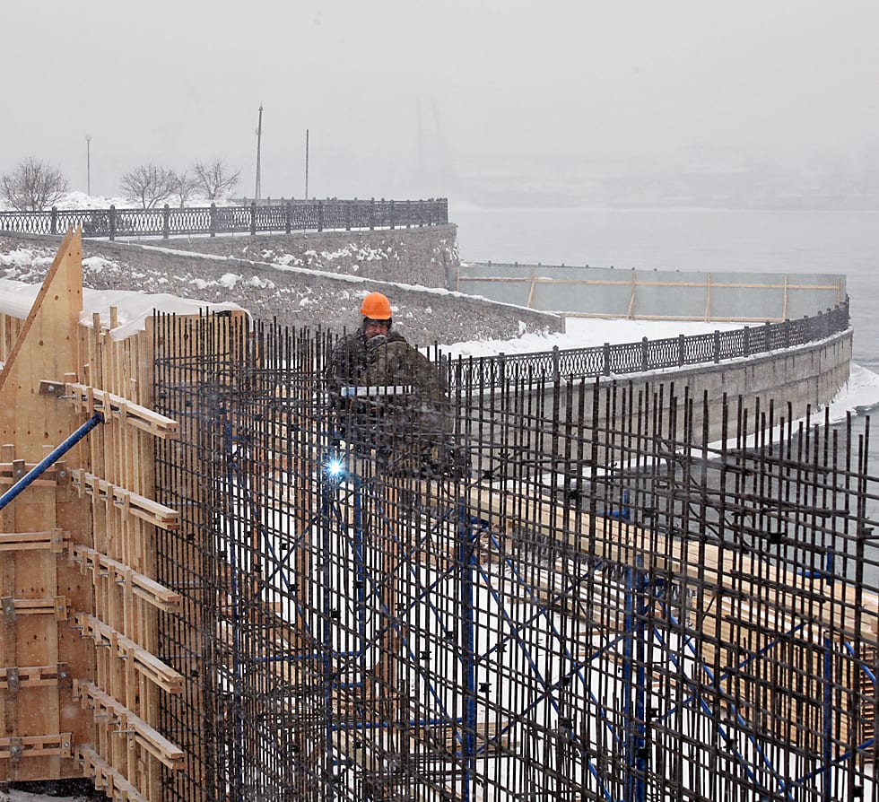 Большая стройка идёт на Нижней набережной реки Ангары. Сейчас там вбивают сваи и укрепляют берег железобетонной арматурой. В небольшой прорабской на месте работ стоит макет: таким должен быть этот участок спустя полгода. Но снаружи очертания будущей набережной угадываются пока с трудом. Строители, впрочем, настроены оптимистично. По словам заместителя генерального директора компании-подрядчика СПМК-7 Александра Ерохина, сейчас по всему берегу от Вечного огня до реки Ушаковки уже заканчиваются земляные и укрепительные работы. «В апреле или начале мая мы планируем завершить монолитные работы, после чего можно будет приступать к облицовке набережной гранитом», – рассказал он. Использоваться для этого будет камень двух цветов – серого и красно-коричневого. На всю Нижнюю набережную понадобится около 40 железнодорожных вагонов гранита. Доставляться он будет сразу из нескольких мест. «Мы планируем использовать камень отечественных производителей с Урала, а также из Тулуна. И частично, наверное, будем завозить из Китая», – уточнил Ерохин.