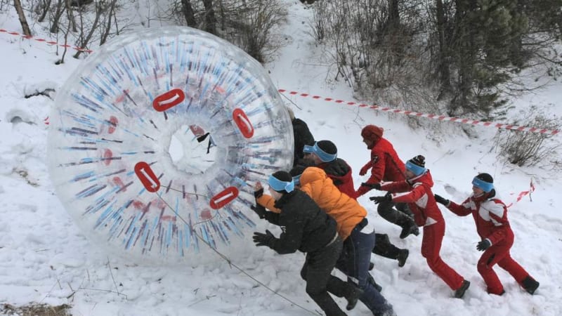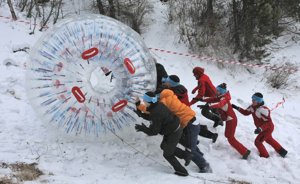 Мы снова бежали по рыхлому снегу за первой командой. Шумной кучкой ребята спускались с горы к следующему заданию. Не разбирая дороги, истошно крича, с искромсанным знаменем в руках их нагнал самый громкоголосый участник команды медиков по имени Ваня. Я уже еле перебирала ноги, голова кружилась от избытка кислорода. Поэтому вторая часть состязаний была для меня похожа на калейдоскоп. Вот участники, скинув куртки, один за другим «просачиваются» сквозь верёвочную паутину. А вот ребята готовятся к стрельбе пластиковыми шариками по мишеням. И наконец, заключительное испытание – команды закатывают в гору зорб (прозрачный шар с человеком внутри).