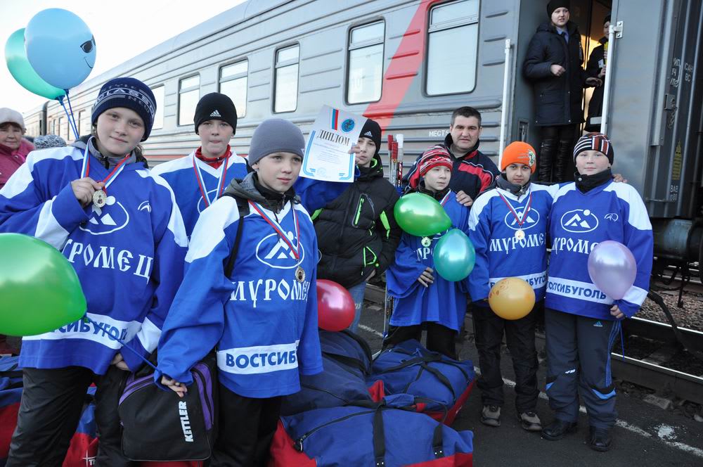 Всё разъяснилось в самом скором времени: по окончании мелодии из тех же репродукторов зазвучали поздравления в адрес детской хоккейной команды «Муромец» из посёлка Алгатуй, которая вернулась этим поездом домой из Новочебок-сарска, заняв первое место на проходившем там Всероссийском чемпионате по хоккею с шайбой. Чемпионат был посвящён памяти лётчика-космонавта А.Г. Николаева. Весть о победе прилетела в Алгатуй уже несколько дней назад, и потому мальчишек с нетерпением ждали их родители, школьные учителя, тренеры спортивного комплекса «Муромец».