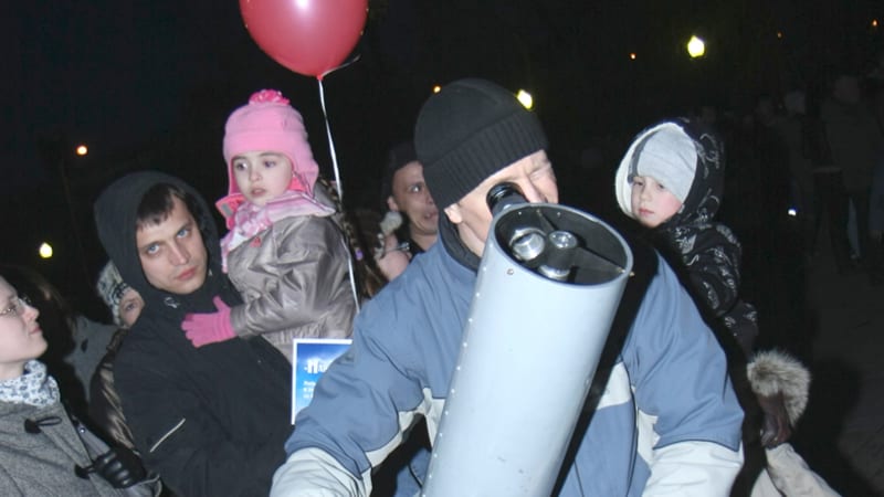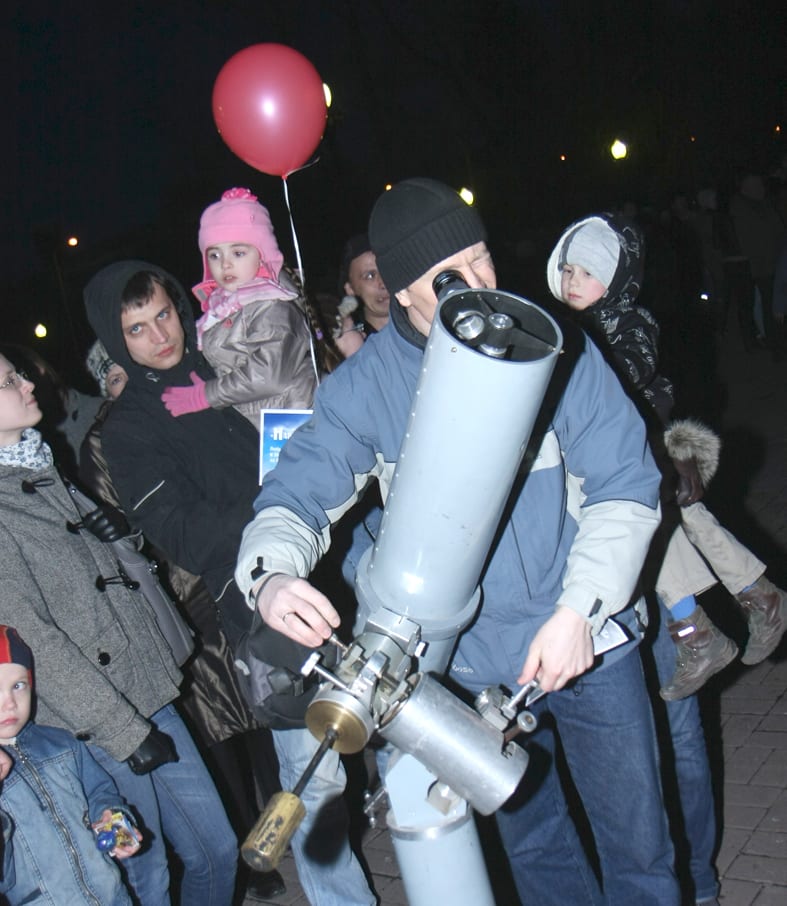 В девять часов вечера на площади появилось семь телескопов, четыре из которых оказались самодельными, но, как признают организаторы мероприятия, они ничем не уступают заводским аналогам, а некоторые по показателям даже могут дать им фору. Как только стемнело, желающие смогли взглянуть на поверхность Луны, а чуть позже телескопы настроили на скопления звёзд.