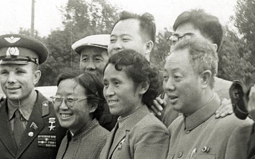 Китайские экскурсанты ожидали Гагарина на выходе из музея. И когда он появился, окружили его, а потом образовали полукруг, чтобы все вошли в кадр (у них был свой фотограф). В этот момент я успел сделать несколько снимков общего плана. Приблизился, чтобы выхватить кадр покрупнее, но, как назло, кончилась плёнка…