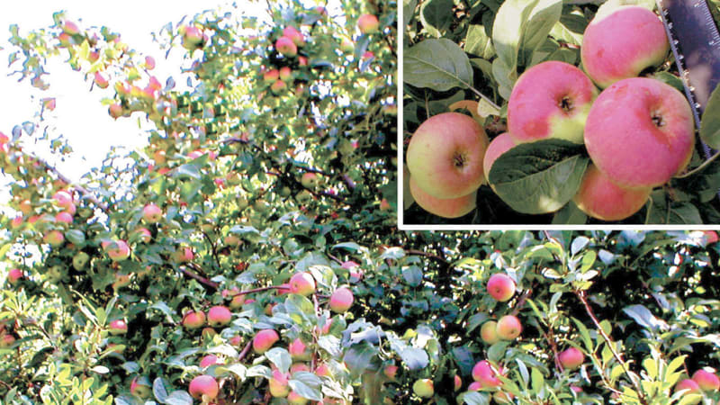 Порадовал отменным урожаем сорт Заветное. Он тоже пострадал от цитоспороза, и треть дерева была вырезана, с него сняли около 20 кг плодов. Многосортовой стланец на скелете Чудного тоже дал хороший урожай, большая часть которого была снята «добрыми людьми», нам досталось лишь 14 кг. Ещё понемногу собрали с других деревьев, в общем получилось около 130 кг.