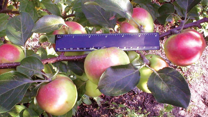 Надо отметить, что неплохо перенёс зиму сорт Подарок садоводам и даже дал приличный урожай – около десяти килограммов. Однако на дереве совсем нет приростов и цитоспороз продолжает свою разрушительную работу. Порадовали крупноплодные сорта, растущие в штамбах. Это Восторг, Дачное, Алтайское наливное, 8314, Амурское красное. Первые плоды дали крупноплодные Сувенир Алтая, Амурское раннее, Китайские фонарики, Барнаульское румяное, Фламинго. Неплохим урожаем одарили полукультурки Красноярское сладкое, Катюша, Лойко, Лада, Жебровское, новые сорта Алпек, 28504, Пеструшка.