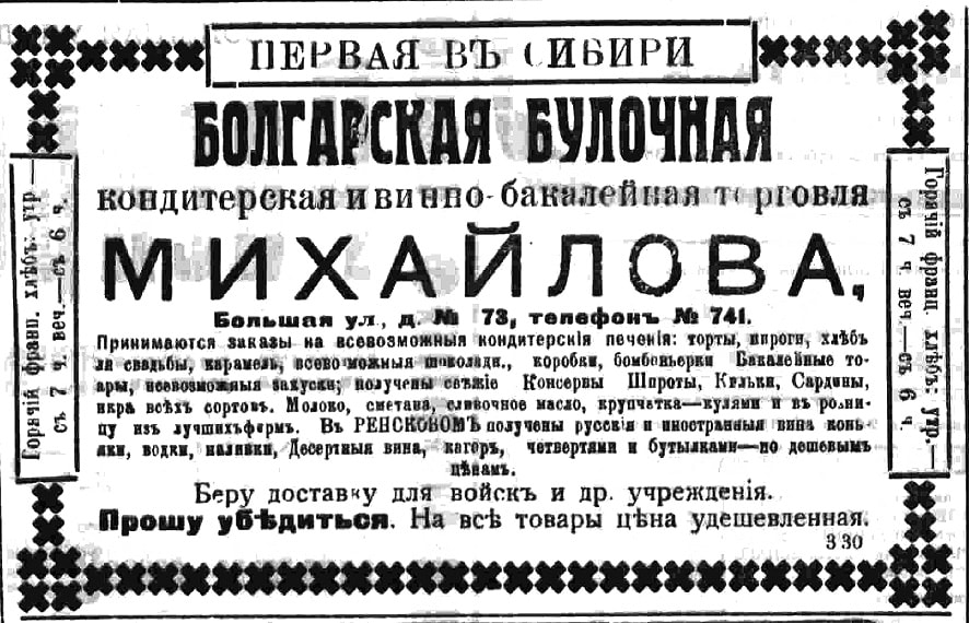 Зато появился заказ на уроки в семье коммерсанта Михайлова, открывшего в Иркутске «первую в Сибири болгарскую булочную-кондитерскую». Расположилась она неподалёку от кофейной-кондитерской предпринимателя Камова с явной целью составить ей конкуренцию. Впрочем, господин Камов, как и дети его, выглядел чрезвычайно уверенным. Напротив вокзала у него возводилось большое каменное здание с лифтом, предназначенным поднимать клиентов из магазинов на первом этаже в кофейню и гостиницу. Конкуренты в один голос назвали это «чрезвычайно выгодным предприятием» и затеяли игры с отступными. Но Камов лишь усмехался: с глазковской новостройкой он связывал далеко идущие планы. Правда, опасался, как бы приказчики не подвели: непрекращающаяся борьба подчинённых за всё большие выходные давно уже беспокоила его. Он даже встречался с правлением общества приказчиков, надеясь хоть там найти понимание.