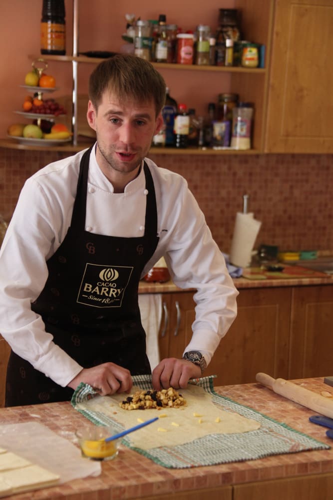 К конфетам Артём Глушков решил приготовить штрудель с ванильным соусом. С немецкого слово «штрудель» переводится как «вихрь». Мы привыкли к яблочному и ягодному штруделю, а оказывается, в него кладут всё, вплоть до сала и мяса. Так любят, к примеру, немцы. «Приготовление банально просто», – заверил Артём Глушков.
