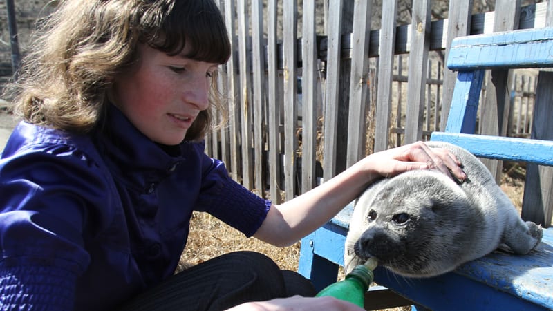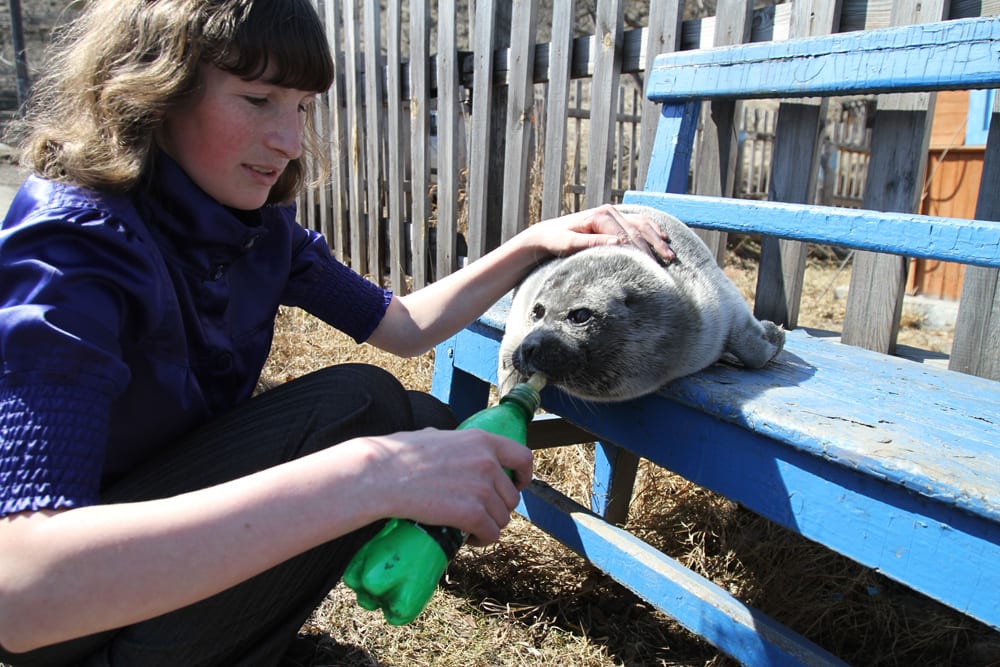 «Зайка, Заинька, куда побежала! Только помылась – и снова в грязь?» – Юрий Карпов нерпёнку то ли папа, то ли мама. Ему не привыкать: вырастил в одиночку троих детей. Железнодорожник с 26-летним стажем, последние 20 лет он работает в железнодорожной охране, сопровождает поезда с ценным грузом. Сейчас самый ценный его груз – нерпёнок Зайка, которому он, как может, создаёт «привилегированные условия». В Слюдянском районе Карпова называют «положительным мужиком» и «спасателем». Положительный мужик из посёлка Сухой Ручей Слюдянки – натуралист-любитель. И общественник. Он сотрудничает с женсоветом, с тремя редакциями. Два года был председателем местного поселкового совета. Спасателю Карпову часто везут раненых зверей. «Иногда нас дома нет, приходим – ящик стоит, там зверёк или птица», – рассказывает он. Нерпа – первый опыт. Раньше всё больше носили птиц-подранков. Охотнику добить жалко – несёт Карпову. В семье жили цапля, два филина, сокол-пустельга, ястреб-перепелятник, много уток. Сейчас живёт красная утка – огарь. «Мы стараемся вернуть всех в природу или пристроить в зоопарки», – говорит Юрий Карпов.