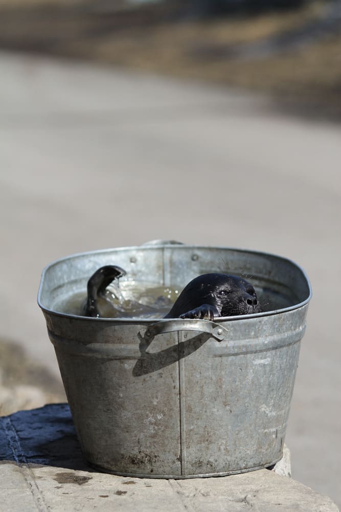 Вечером 8 апреля ему так и не удалось отдохнуть. «В девять вечера позвонили из Байкальска, – рассказывает Юрий Карпов, покачивая на руках серого нерпёнка. – Тяжёлая-то какая, выросла уже. Пощупайте, какой жир. Байкальчане сказали, что нерпу откуда-то издалека привезли рыбаки, а потом бросили. Там возле лодочных гаражей оттаяла небольшая лагуна, они и кинули нерпёнка в этой луже». Неизвестно, как там было. Может быть, кто-то пожалел тюленёнка, думая, что мать его бросила. Дело в том, что нерпы рожают в феврале-марте и до апреля нерпёнок скрыт в «домике» среди торосов и наносов снега. Когда снег тает, убежище может обнажиться. Белёк для того и белый, чтобы его не было заметно на снегу. И если тюленёнок один, это не значит, что он брошен. Тюлени могут оставить детёнышей, когда охотятся под водой. И скорее всего, мама этого нерпёнка была где-то рядом, а люди её просто спугнули. Если бы они ушли и подождали, мать наверняка пришла бы на крик. «Лучше вообще бельков не трогать, они не без присмотра. Кричат малыши довольно громко, а у зверей слух отличный, мама бы его услышала на большом расстоянии, – уверен Юрий Карпов. – Вот наш нерпёнок первые полтора суток, пока мы его везли, всё время скулил громко, звал мамку». Может быть, эти люди были вовсе не добрыми. Подстрелили мать, на малыша рука не поднялась – взяли с собой. Наигрались и бросили. Там его и обнаружили байкальчане. Водили детей смотреть, фотографировали на телефоны.