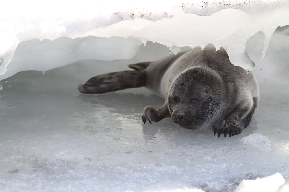 – Я сразу поинтересовался, какого цвета тюленёнок, – продолжил Юрий Карпов. – Сказали, что белого. А белькам не положено быть в воде. Белая шерсть создана для того, чтобы защитить от сухого холода, но никак не от воды. Поэтому, если вам посчастливится увидеть белька на льду, не пытайтесь его спустить в проталину или лунку. Он может плавать, но для воды он ещё слишком маленький, белая шерсть намокнет, и ничего хорошего не будет. Я испугался, когда нам сказали, что в Байкальске белёк уже больше суток в луже плавает.