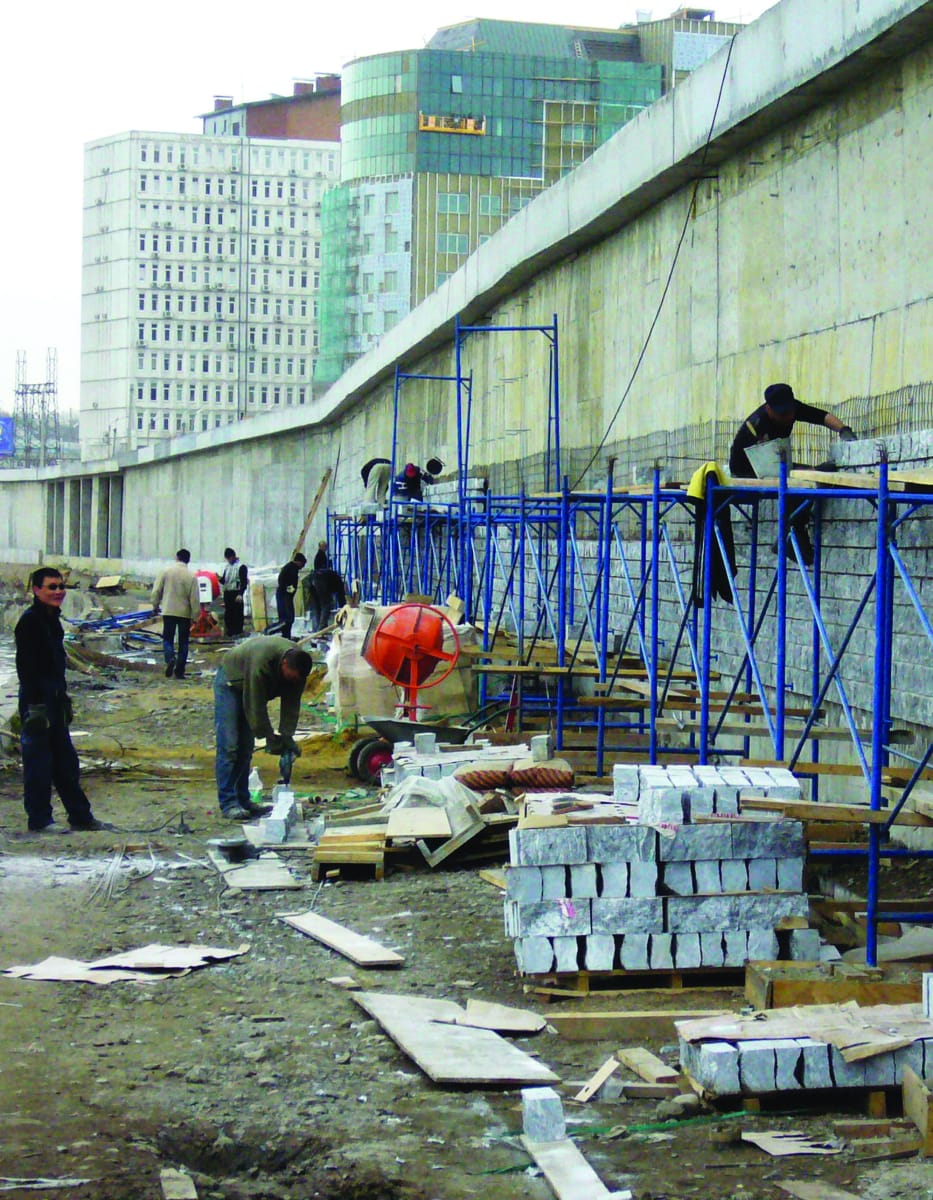 Общая стоимость строительства первого этапа 720 миллионов рублей, на сегодняшний день освоено в пределах 500 миллионов. Сейчас начата отделка подпорных стен гранитной плитой. Из общего количества 3,5 тысячи квадратных метров на сегодня отработано около 400.