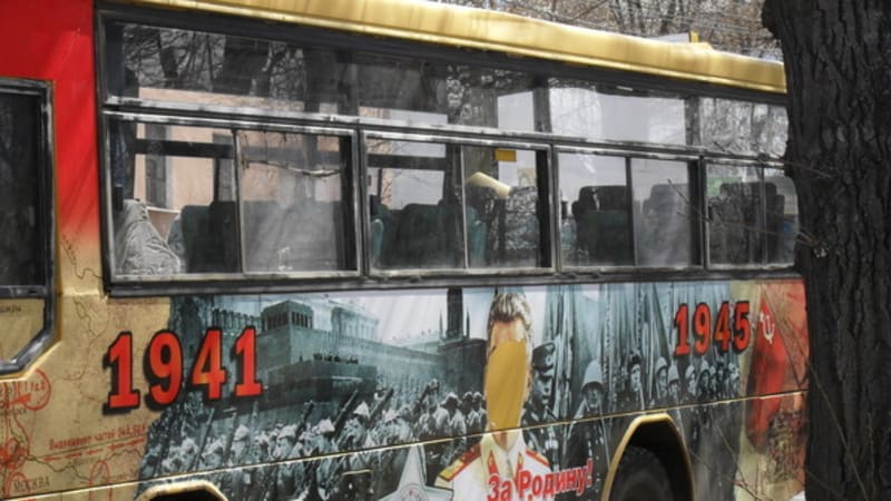 В Иркутске неизвестные повредили изображение Сталина на борту автобуса