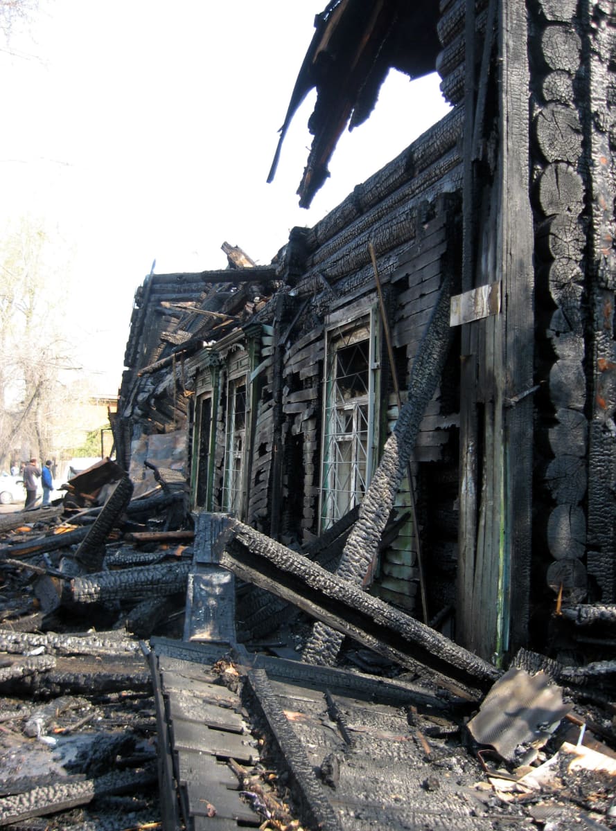Огнем уничтожено деревянное двухэтажное здание, находившееся по адресу ул. Пролетарская, 7а