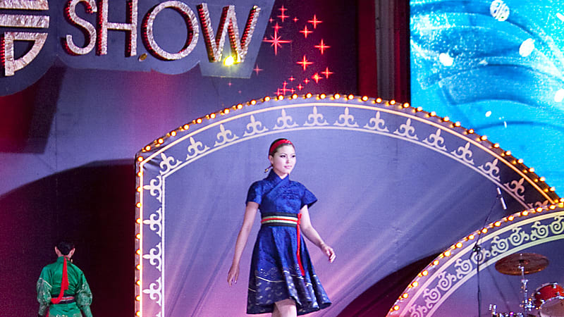 Специально для дефиле во Дворце спорта был смонтирован подиум, какого Иркутск ещё не видел. Как сообщили организаторы, его длина составила 20 метров. Первыми на нём появились танцующие фигуры в чёрном, которые под загадочную монгольскую музыку складывались в причудливый рисунок. Собственно дефиле же началось с показа платьев и костюмов из красного шёлка. «Это цвет огня, силы, удачи, победы», – пояснил ведущий, звезда монгольского телевидения Ануш. Вместе с Яной Павлидис он представлял эксклюзивные и оригинальные костюмы дома моды «Торго». Впервые в России демонстрировалась избранная коллекция современных костюмов, сочетающая смешение стилей: дизайнеру удалось соединить традиции народного монгольского костюма 18–20 веков и современные западные тенденции. Принцип, объединивший все наряды, которые представили манекенщицы иркутскому зрителю: строгие чёрные платья, нежные и романтичные свадебные, сложные костюмы из авангардной коллекции, – утончённая восточная женственность и элегантность.