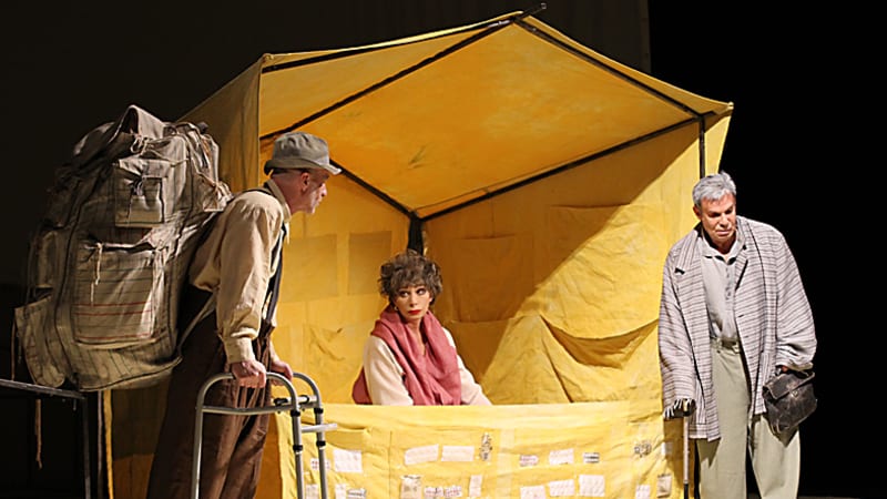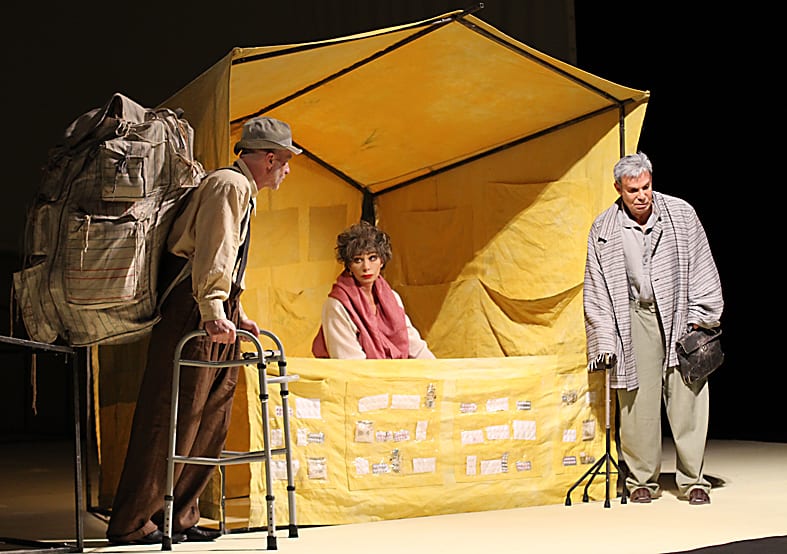 Пьеса «Продавцы резины» считается одним из лучших произведений израильского драматурга Ханоха Левина, ещё при жизни названного классиком и «израильским Хармсом». Героям пьесы – аптекарше Белле Берло (её сыграла Васильева) и двум её ухажёрам Иоханану Циргенбаю (роль Ефима Шифрина) и Шмуэлю Спролю – уже за 40. У Иоханана есть накопления в банке, у Шмуэля – 10 тысяч презервативов, доставшихся ему по наследству, а у Бэллы – её бизнес. Все трое озабочены тем, как устроить своё счастье, выгодно распорядившись имуществом, а потому всю жизнь тратят на бессмысленный торг.