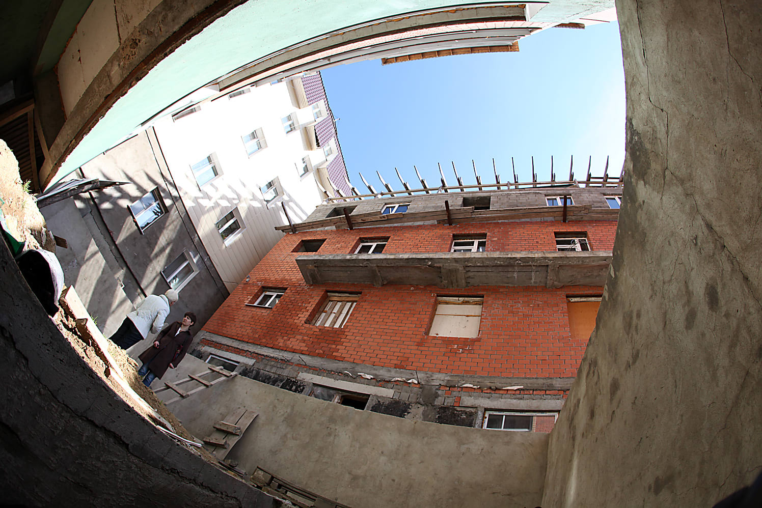 В недостроенные дома тяжело добираться – остановки общественного транспорта далеко, дороги толком не заасфальтированы, дворы похожи местами на окопы. Приходится катастрофически опаздывать. Рядом с домом на Бородина, 45, оказалась более-менее приличная трасса, но само здание окружено щебёнкой, которую когда-то планировалось залить бетоном. Бородина, 45, – пожалуй, самая известная новостройка Иркутска. Дом, которого по документам вроде как и не существует. В бумагах числится ветхое деревянное здание, а сама площадка предназначена строго под индивидуальное строительство. Официальная версия происходящего здесь: виноваты жильцы и фирма Кузнецова «Росс ДСМ», которая строила шестиэтажку. Согласно заключениям надзорных органов, на Бородина, 45, нормам не соответствуют лифт и кладка кирпичей, отсутствуют сейсмопояса. Под угрозой сноса здание на Бородина, 45, находится не первый месяц.