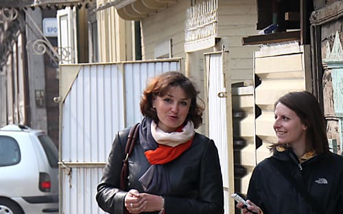 В десять утра в субботу в центре Иркутска удивительно тихо и спокойно. Сквозь совсем недавно появившиеся бледно-зелёные листья просвечивает майское солнце. Утренняя прогулка с Региной Присяжниковой начинается от Троицкой церкви.