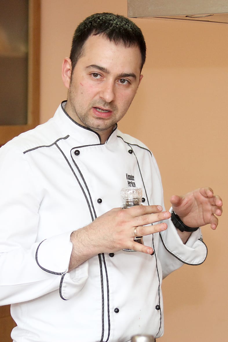 – Потом пошёл в армию, после чего некоторое время проработал телохранителем. Но всё-таки вернулся в повара и окончил Международную школу кулинарного мастерства в Тель-Авиве. В Иркутск приехал случайно – к родственникам жены. Тогда в 2005 году открывался «Сенатор», которому требовался повар со знанием итальянской кухни. Как ни странно, конкурентов у меня на эту должность не было, – рассказал он гостям мастер-класса в лаборатории вкуса компании «Пятая армия» и приступил к теоретической части.