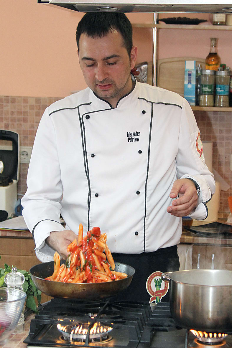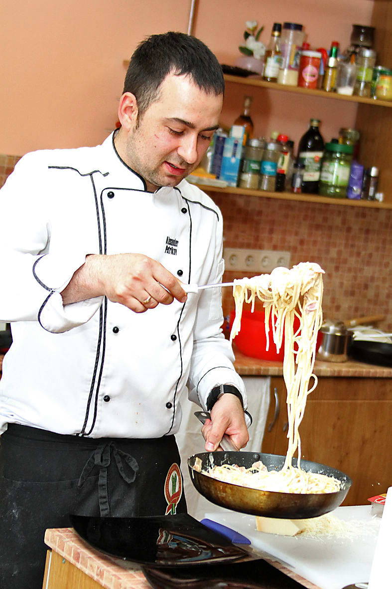 Шеф-повар ресторана «Сенатор» Александр Петриков свой мастер-класс посвятил пасте. Три часа только ей. Рай для фанатов макарон. Итальянская кухня, пережившая пик популярности в иркутских ресторанах, теперь перекочёвывает в домашние условия. Александр Петриков научил гостей мастер-класса готовить правильную карбонару, макаронный салат и навсегда запретил добавлять в итальянские блюда укроп.
