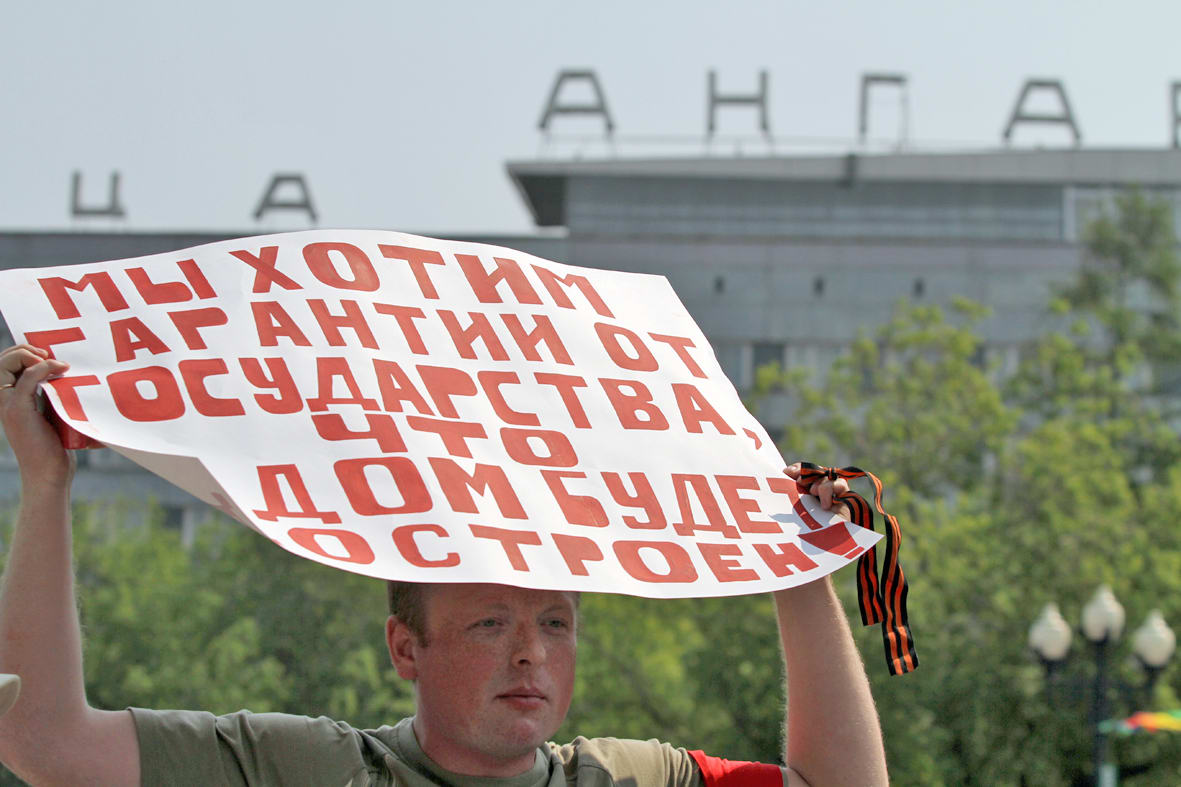 Напротив здания мэрии Иркутска 6 июня в полдень собралось около двух десятков человек, все с плакатами и боевым настроем. Это были самые инициативные из инициативной группы дольщиков дома на улице Баумана, 203/1, в Иркутске (Ново-Ленино), застройщиком которого является общественная организация ветеранов боевых действий в Чеченской Республике и других «горячих» точках «Патриот». Всего на объекте числятся более 100 дольщиков, но часть из них – юридические лица. В руках у инициативной группы стандартные лозунги для такой акции: про то, что 214-й закон не работает, и про то, что людей обманули. Их блок-секцию «Патриот» должен был сдать ещё в 2009 году, но нанятый подрядчик – ООО «Астрея» – дом не доделал и обанкротился, покинув стройплощадку на Баумана, 203. У дольщиков остался только сам «Патриот», председатель которого Виталий Корытников тоже стоял в пикете и периодически выслушивал обвинения от разъярённых горожан. Для развития дискуссии дольщики ждали мэра. Вместо мэра к ним вышел депутат Законодательного Собрания Ир-кутской области Сергей Курилов.