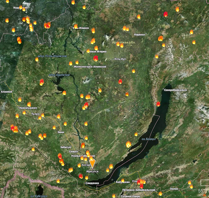 Как сообщает пресс-служба губернатора Иркутской области, на территории региона действует 54 пожара на площади 3,9 тысячи гектаров.
