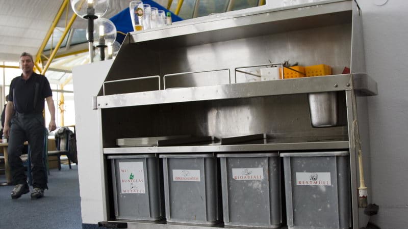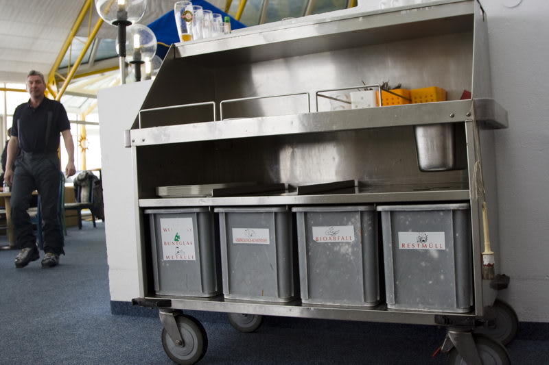 Этот австрийский ресторан – на высоте. И в прямом смысле (3500 метров над уровнем моря), и в смысле экологии. Официанты катают по залу вот такую тележку с четырьмя контейнерами.