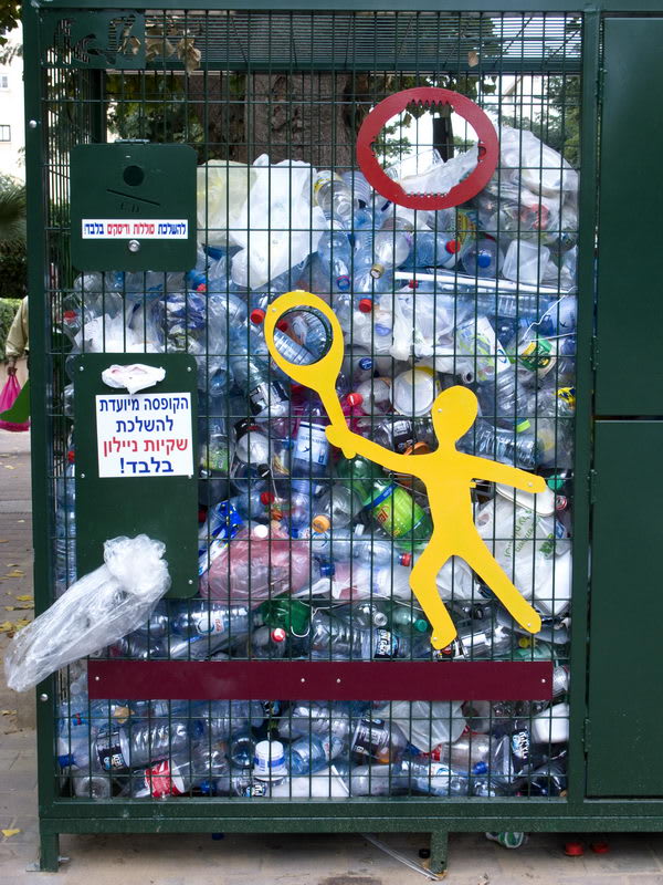 Израильтяне предусмотрительнее: в земле обетованной и контейнеры пообъёмнее, и дизайнерская фантазия на них порезвилась, и ещё один подвид мусора отсортировывается: слева приварен короб для ненужных CD-дисков, которые просовывают через прорезь.