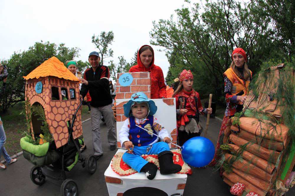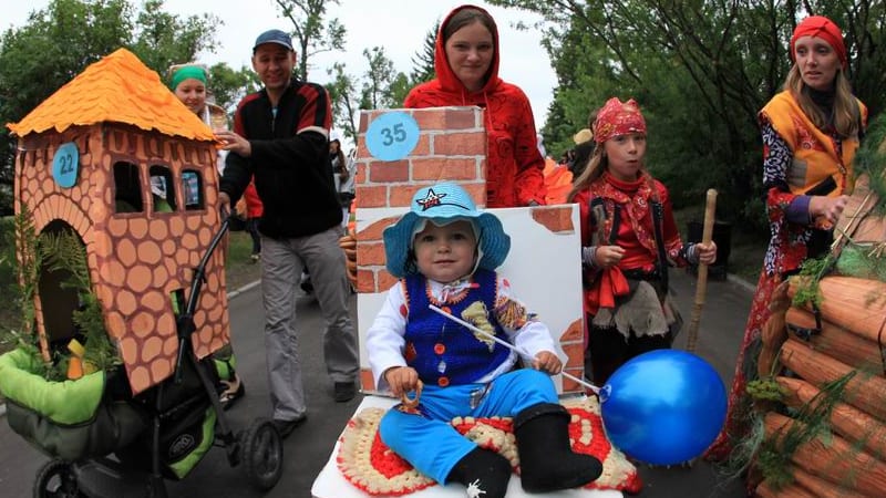 Емеля Дима на самоходной печке, вождь индейцев Матвей на мобильном вигваме и маленькая Бабка-Ёжка Устинья в избушке на курьих ножках приехали на бульвар Гагарина, чтобы участвовать в праздничном шествии в честь Дня семьи. Точнее, этих сказочных персонажей на набережную привезли родители, а в роли самоходных средств выступили детские коляски. Причём мам и пап малышей нисколько не смутила, мягко говоря, «нелётная» погода (в этот день в Иркутске было пасмурно и холодно).